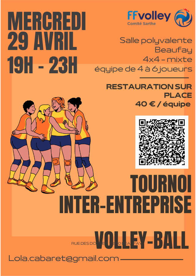 Venez assister au tournoi inter-entreprise de volley du Comité de la Sarthe et du club JSBeaufay ! C’est l’occasion de passer une soirée dans une ambiance conviviale et sportive avec ses collègues et de découvrir le volley.